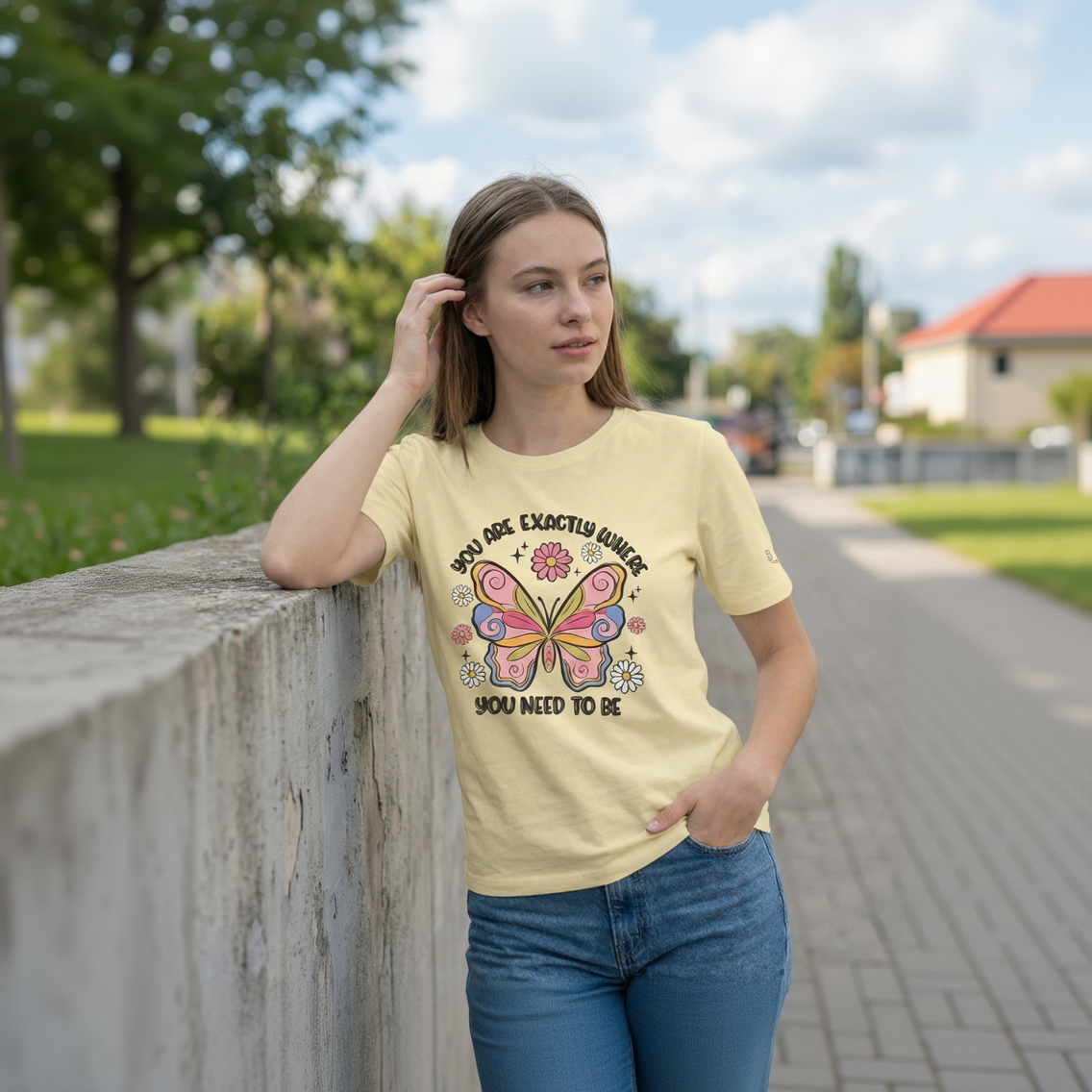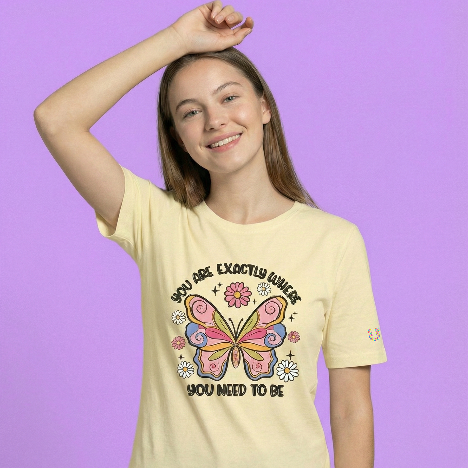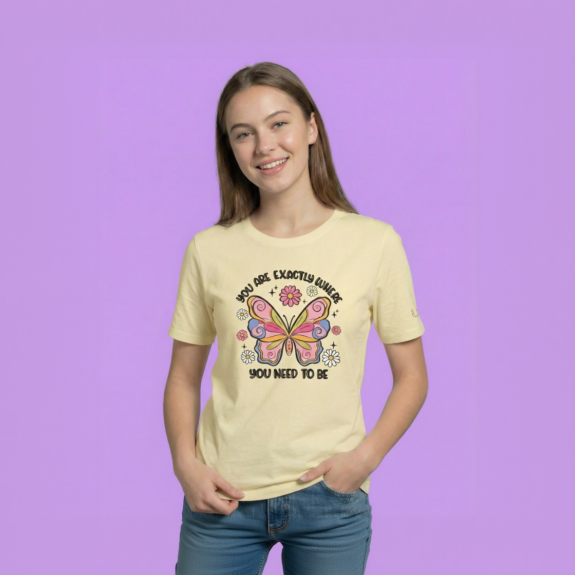 butterfly design, surrounded by delicate flowers and an inspiring message, this Tee is all